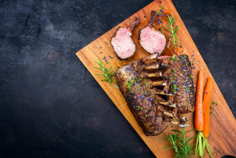 Jetzt nachmachen – Glasiertes Lammkarree auf Maronen-Kartoffelpüree an Kräuterseitlingen